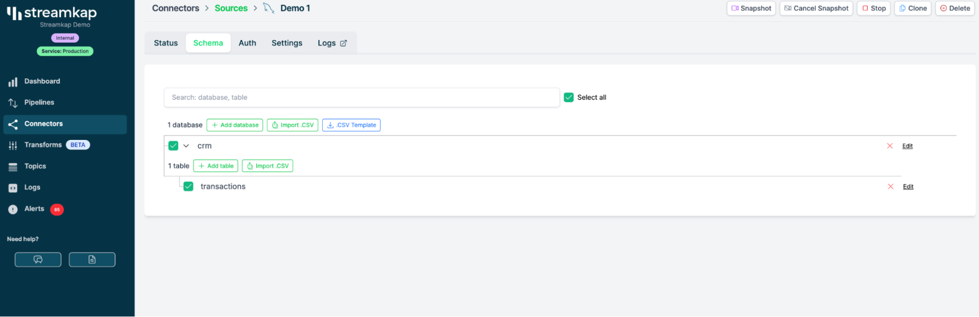 Streamkap предоставляет панель мониторинга, на которой вы можете: